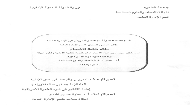 الاتجاهات الحديثة للبحث والتدريس فى الإدارة العامة